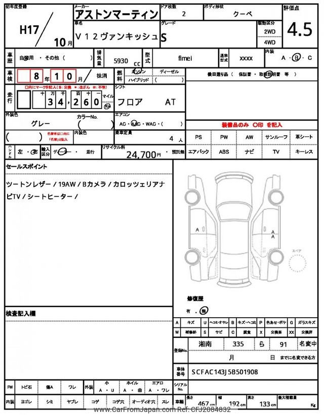 Aston Martin V12 Vanquish 2005 for sale in Mozambique (Mzn. 4,342,200)
