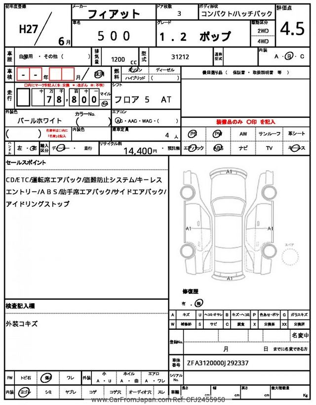 Fiat 500 2015 for sale in Mozambique (Mzn. 558,531)