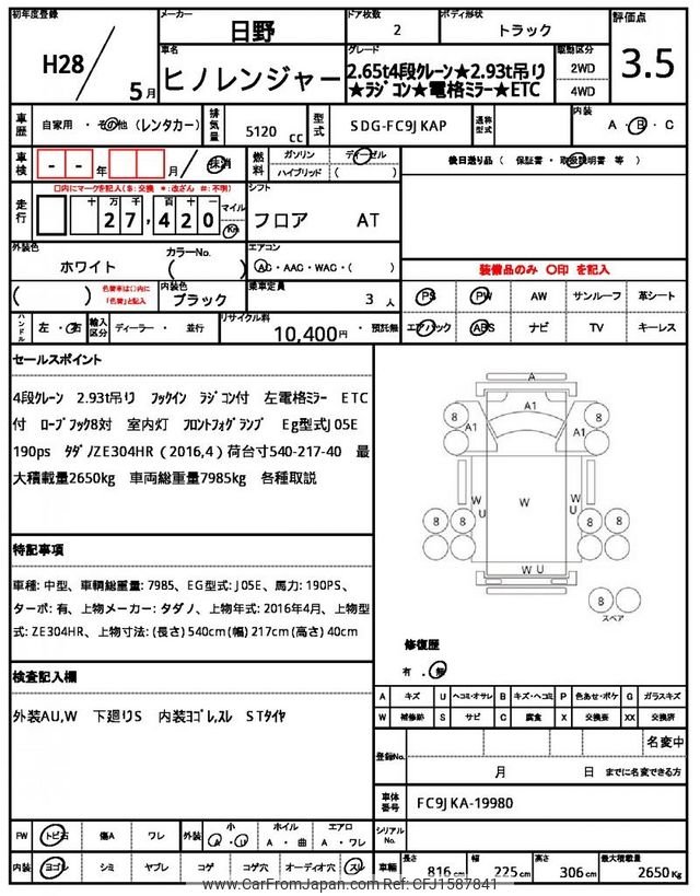 Hino Ranger 2016 for sale in Mozambique (Mzn. 3,067,343)
