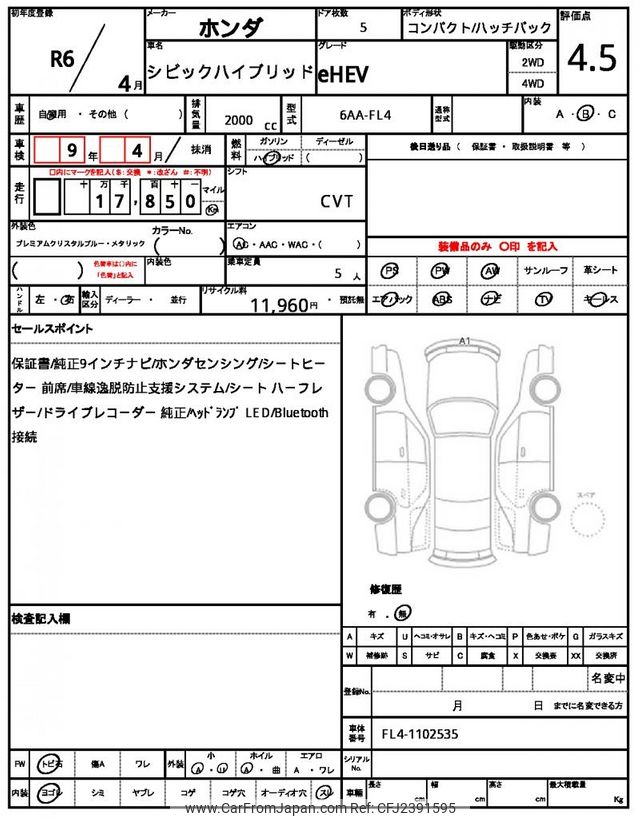 Honda Civic Hybrid 2024 for sale in Mozambique (Mzn. 1,713,218)
