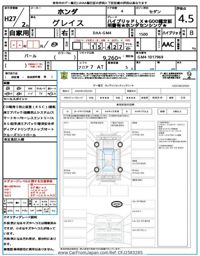 Honda Grace 2015 for sale in Mozambique (Mzn. 577,026)