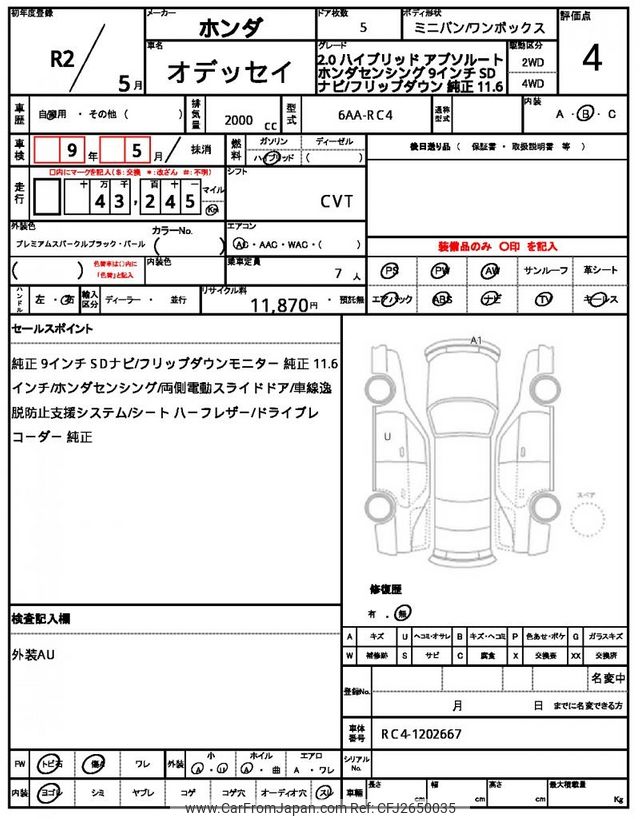 Honda Odyssey 2020 for sale in Mozambique (Mzn. 1,631,455)
