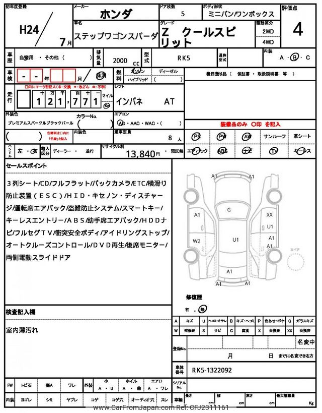 Honda Stepwagon Spada 2012 for sale in Mozambique (Mzn. 629,673)
