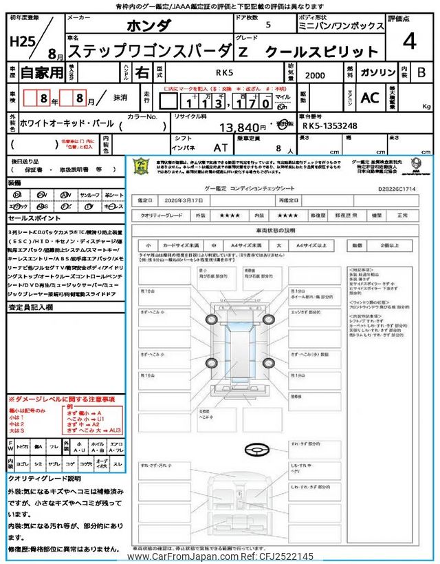 Honda Stepwagon Spada 2013 for sale in Mozambique (Mzn. 647,035)