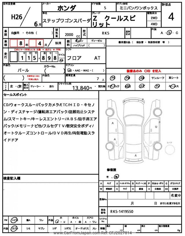 Honda Stepwagon Spada 2014 for sale in Mozambique (Mzn. 584,554)