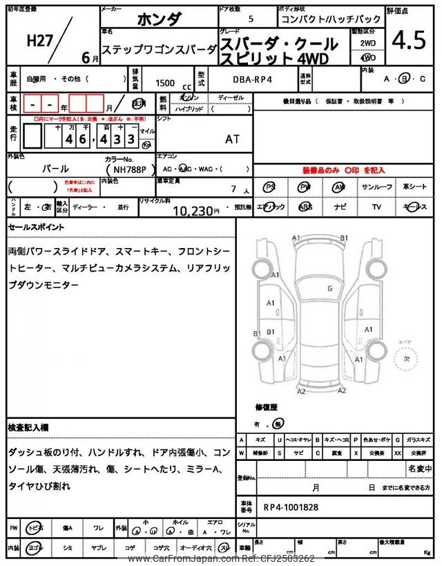Honda Stepwagon Spada 2015 for sale in Mozambique (Mzn. 1,601,432)