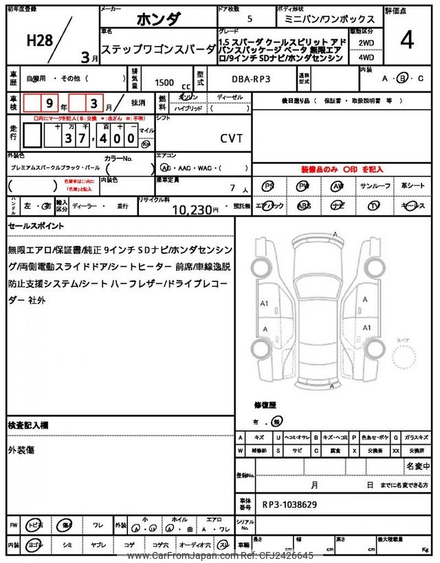 Honda Stepwagon Spada 2016 for sale in Mozambique (Mzn. 1,257,096)