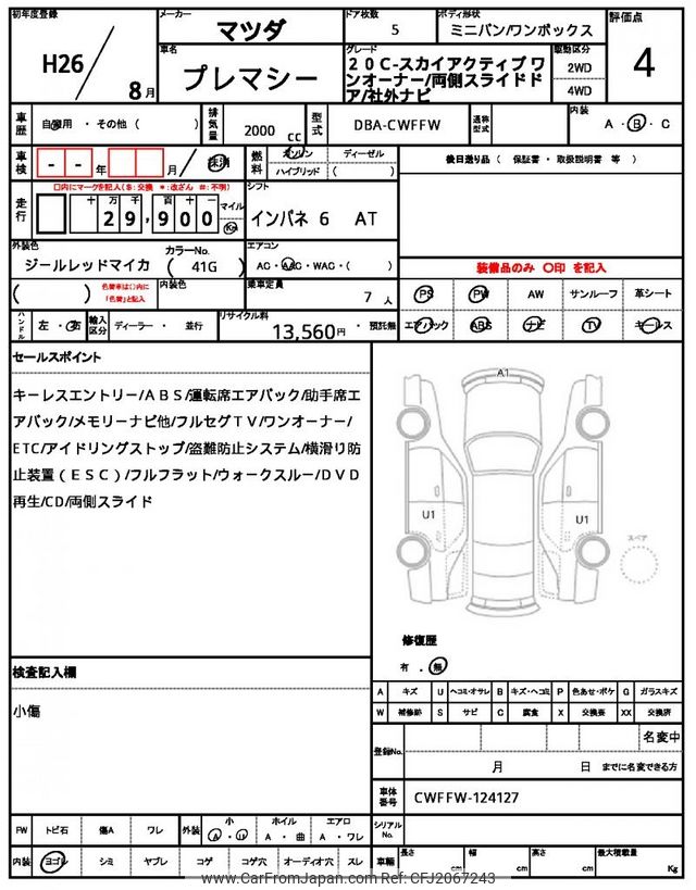 Mazda Premacy 2014 for sale in Mozambique (Mzn. 448,196)