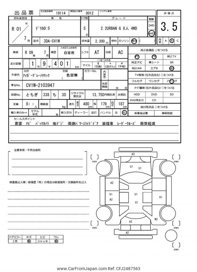 Mitsubishi Delica D5 2019 for sale in Mozambique (Mzn. 1,830,135)