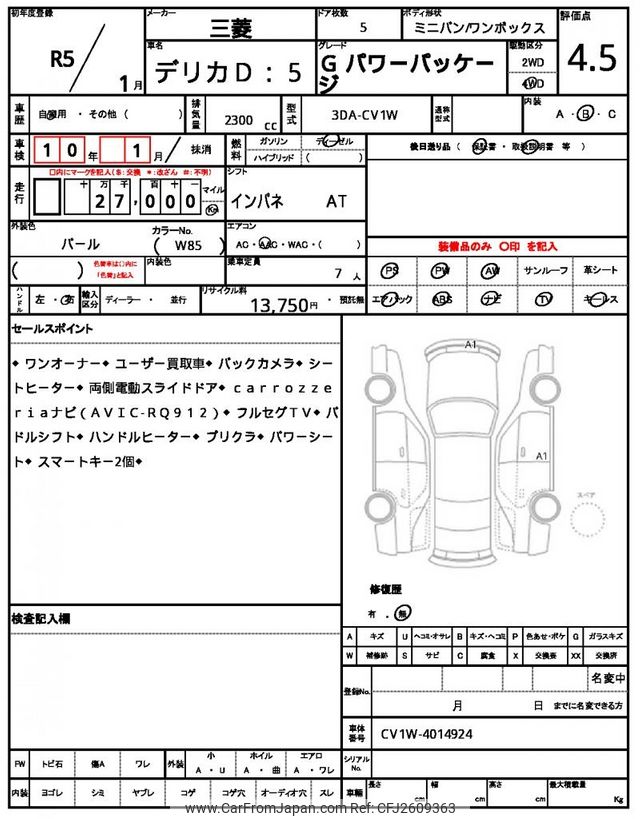 Mitsubishi Delica D5 2023 for sale in Mozambique (Mzn. 2,324,216)