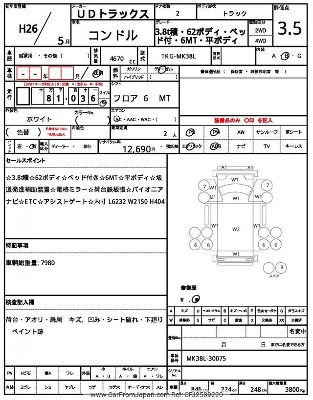 Nissan Diesel UD Condor 2014 for sale in Mozambique (Mzn. 2,004,931)