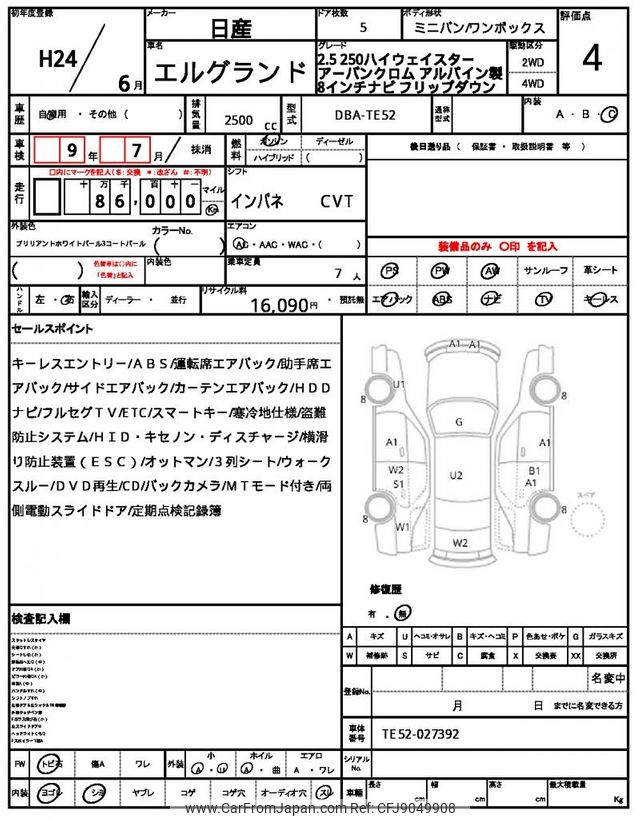 Nissan Elgrand 2012 for sale in Mozambique (Mzn. 674,379)