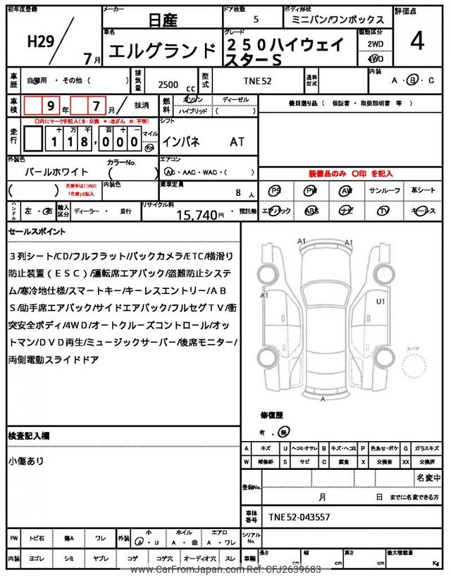 Nissan Elgrand 2017 for sale in Mozambique (Mzn. 746,039)