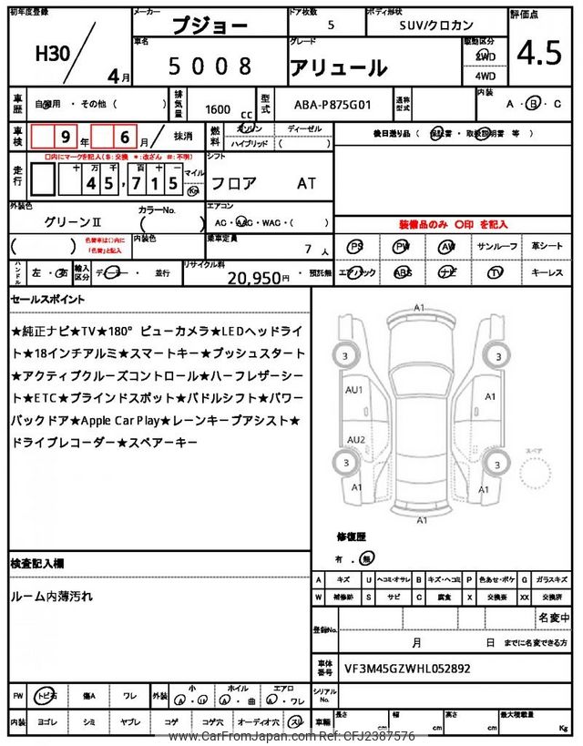 Peugeot 5008 2018 for sale in Mozambique (Mzn. 928,321)