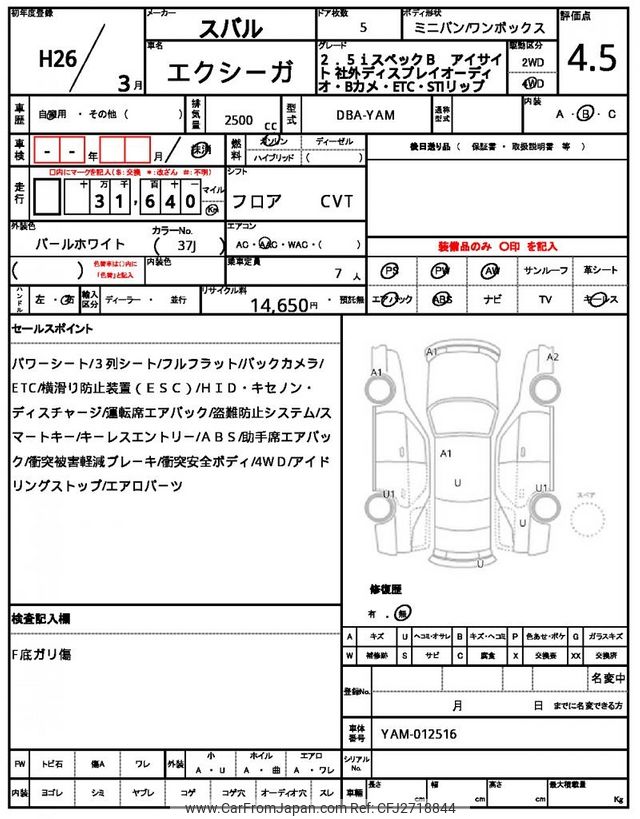 Subaru Exiga 2014 for sale in Mozambique (Mzn. 853,878)