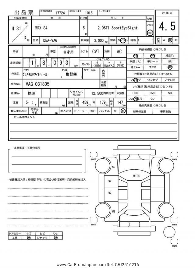 Subaru Wrx S4 2019 for sale in Mozambique (Mzn. 1,588,221)
