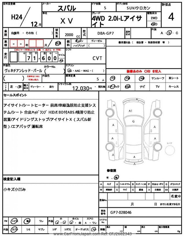 Subaru XV 2012 for sale in Mozambique (Mzn. 594,361)