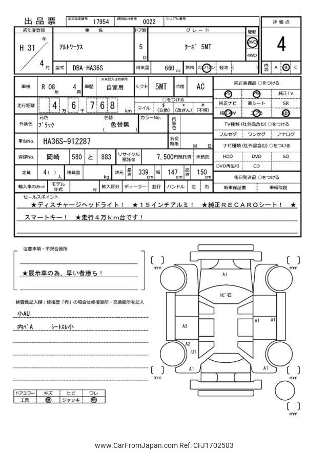 Suzuki Alto Works 2019 for sale in Mozambique (Mzn. 860,821)