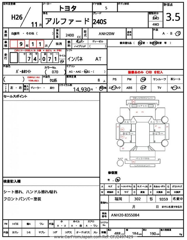 Toyota Alphard 2014 for sale in Mozambique (Mzn. 745,287)