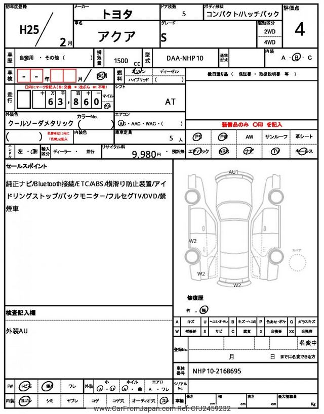 Toyota AQUA 2013 for sale in Mozambique (Mzn. 523,521)