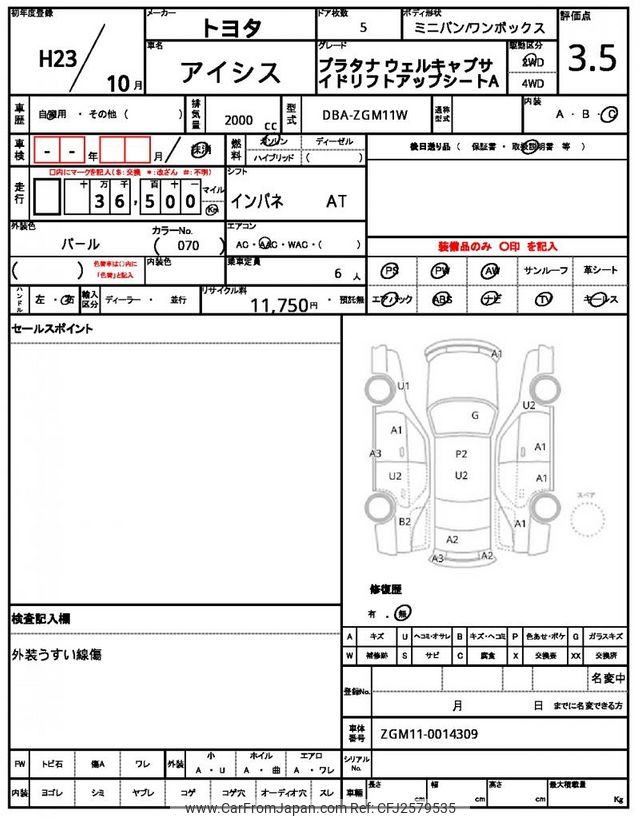 Toyota Isis 2011 for sale in Mozambique (Mzn. 659,627)