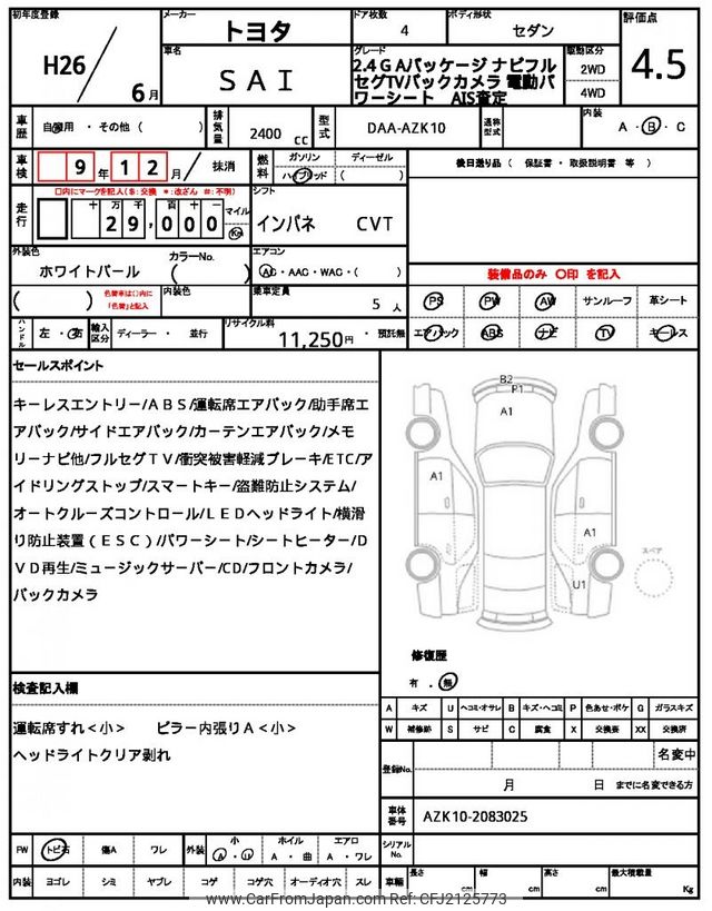 Toyota SAI 2014 for sale in Mozambique (Mzn. 920,014)