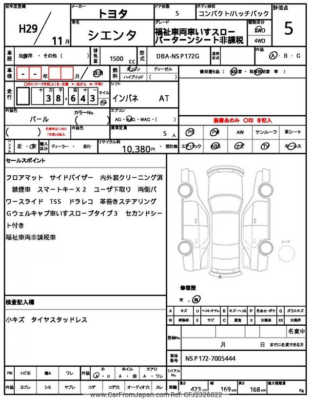 Toyota Sienta 2017 for sale in Mozambique (Mzn. 930,025)