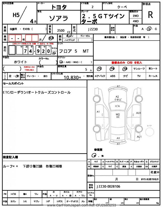 Toyota Soarer 1993 for sale in Mozambique (Mzn. 1,886,937)
