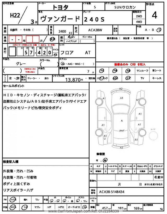 Toyota Vanguard 2010 for sale in Mozambique (Mzn. 787,178)