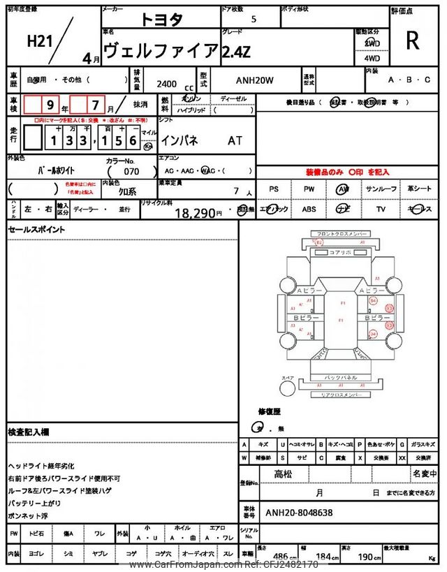 Toyota Vellfire 2009 for sale in Mozambique (Mzn. 403,225)