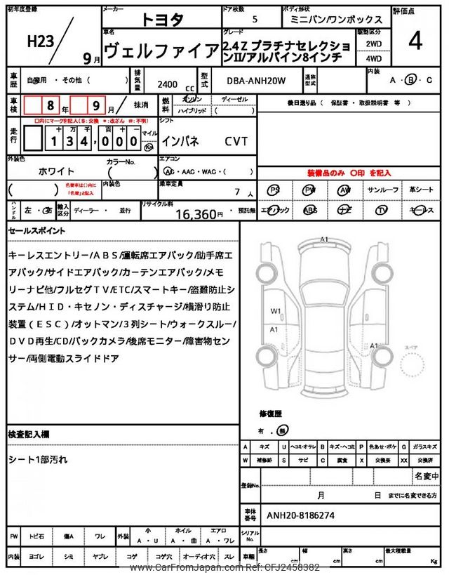 Toyota Vellfire 2011 for sale in Mozambique (Mzn. 663,021)