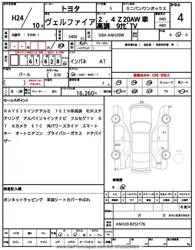 Toyota Vellfire 2012 for sale in Mozambique (Mzn. 749,828)