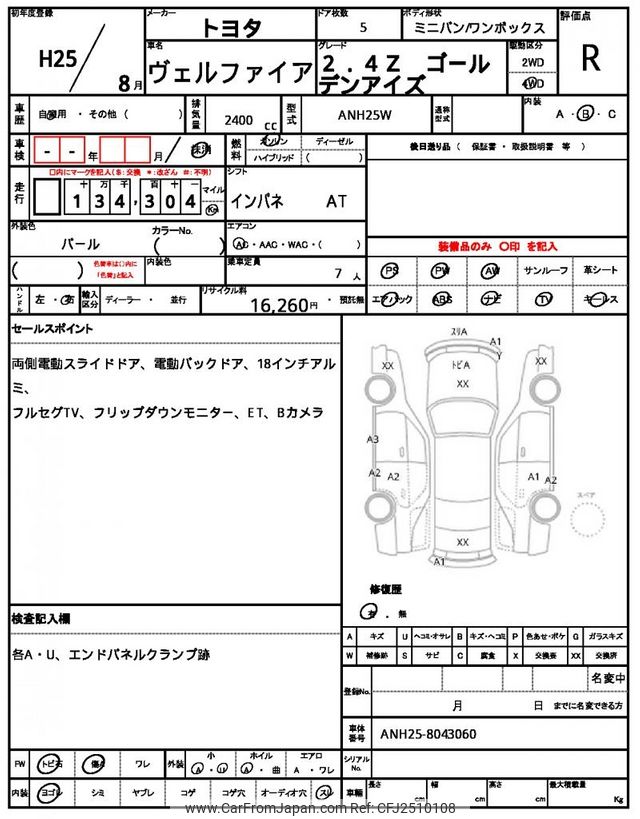 Toyota Vellfire 2013 for sale in Mozambique (Mzn. 499,320)
