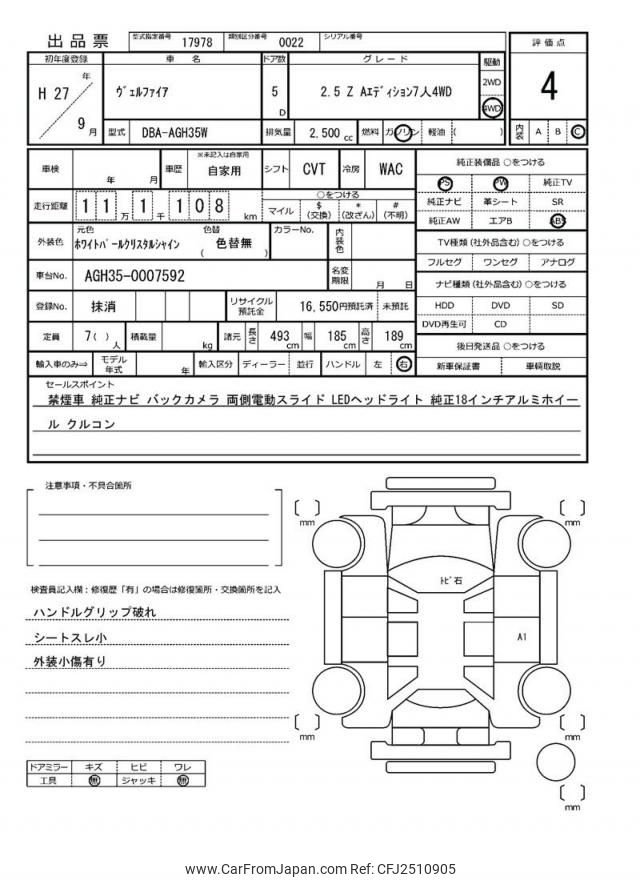 Toyota Vellfire 2015 for sale in Mozambique (Mzn. 1,174,428)