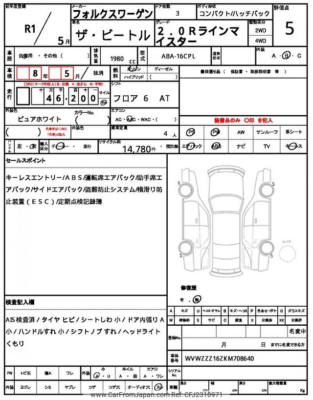 Volkswagen The Beetle 2019 for sale in Mozambique (Mzn. 1,632,781)